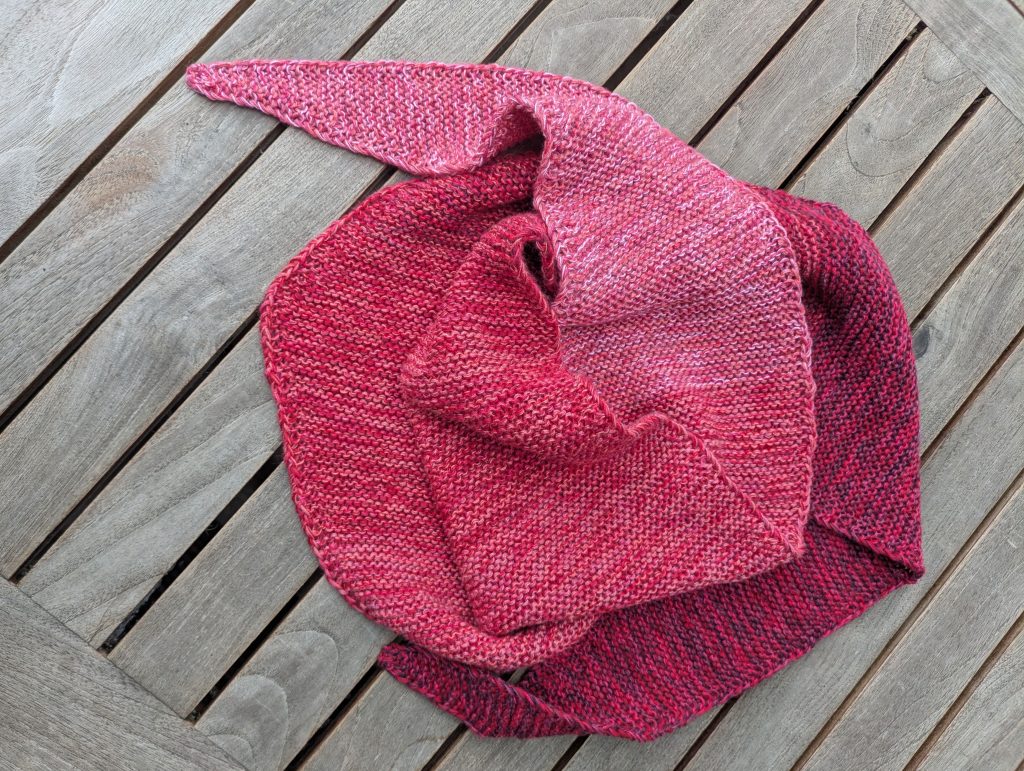 Und plötzlich ist es fertig. Am Ende hatte ich allerdings fast einen Drehwurm, ging es doch immer schneller, weil immer weniger Maschen auf den Nadeln waren.