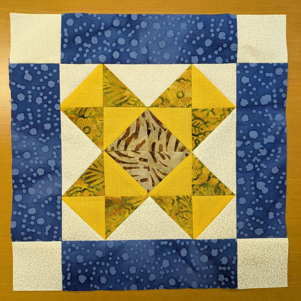 Fertig geworden ist Block Nummer 9. Oben ist meine Stoffauswahl zu sehen und hier kommt der fertige Block.