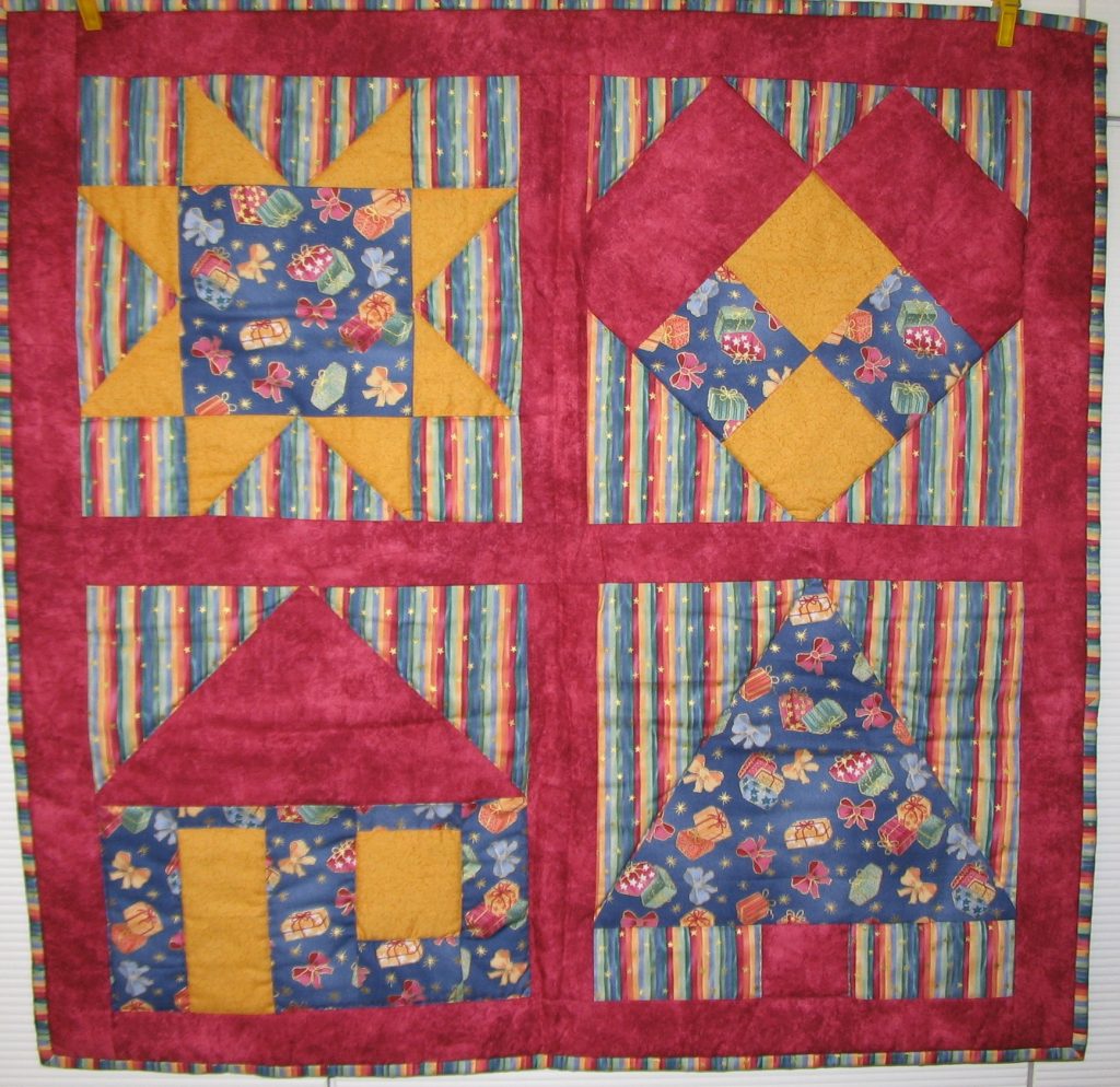 Dieser kleine Wandbehang sollte eigentlich als Beitragsbild erscheinen. Aber da er quadratisch ist und dieses Format das leider im Beitragsbild nicht akzeptiert, müssen wir „oben ohne“ auskommen. 2002 ist er entstanden, die ganz klaren Blöcke und die bunten Stoffe inspirierten mich zum Titel „nordische Weihnacht“.
