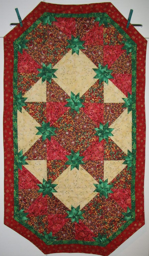 2005 habe ich mich an diesen Tischläufer gemacht. Wahrscheinlich hatte ich die Stoffe im Paket erstanden und in einem Patchworkheft die Anleitung gesehen. Zu Weihnachten habe ich ihn meinen Eltern geschenkt, die er viele Jahre lang durch den Advent begleitet hat.